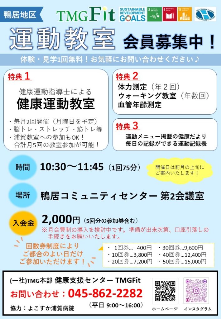 9月より神奈川県横須賀市の鴨居地区でも会員制運動教室を開始しております。