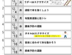 【教室のご案内】2025年12月 浦賀&鴨居会員制運動教室の月間予定表です。(紙面をご希望の方は、教室ご参加時にお受け取りください。