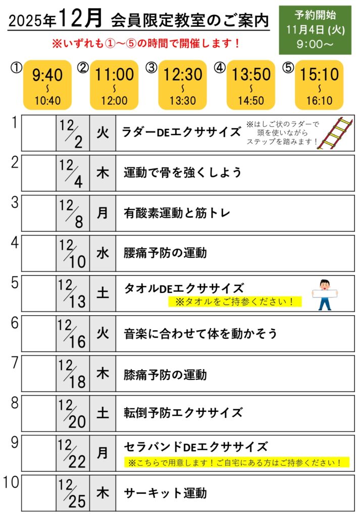 【ご案内】戸塚会員制運動教室 2025年12月予定表